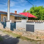 La Villa House For Rent Ulika Valbandon, situada a unos 4 km del Teatro Romano, cuenta con una terraza con vistas al jardín.
